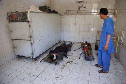 Bodies of civilians lie on the ground at hospital after a suicide attack in front of the Kabul university in Kabul, Wednesday, March 21, 2018. Afghan officials are reporting a large explosion on the road to a Shiite shrine in the capital, where people had gathered to mark the Persian new year. (AP Photo/ Rahmat Gul) The Associated Press