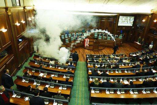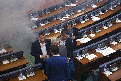 PRISTINA, Kosovo (AP) - Two Kosovar lawmakers were injured Wednesday when the opposition used tear gas several times to disrupt a parliamentary vote on a border demarcation deal with Montenegro.