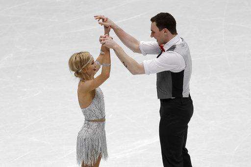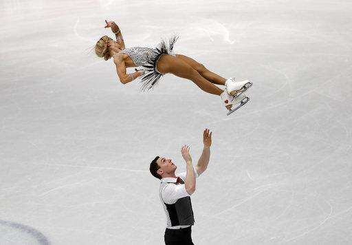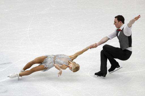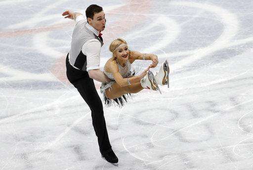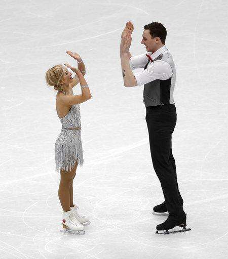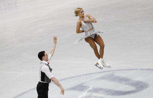 In pairs, Olympic gold medal winners Aliona Savchenko and Bruno Massot of Germany high-fived each other after scoring a personal-best 82.98 points to lead the short program with a lively flapper routine that had the crowd clapping and cheering along from the start. The only Olympic medalists in pairs to show up at worlds, Savchenko and Massot are up against Russia's Evgenia Tarasova and Vladimir Morozov, who were a whisker behind them at 81.29 points.