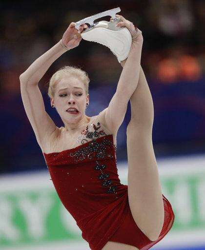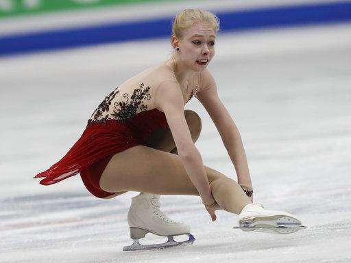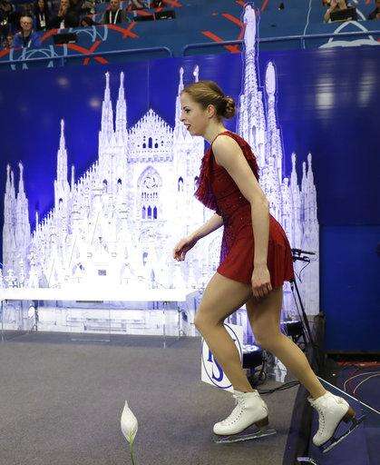 American Mirai Nagasu, who made an appearance at the Oscars between the Olympics and worlds, said she didn't attempt the difficult triple axel, which few women have ever landed in competition, "so I could focus on the program and performing instead of the jumps." She was in ninth place with 65.21 points. The third U.S. skater, Mariah Bell, was in 12th with 59.15.
