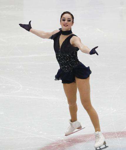 Japan's Satoko Miyahara finished third in a mostly clean program to "Memoirs of a Geisha," while Olympic bronze medalist Kaetlyn Osmond of Canada finished fourth with negative marks on two jumps, putting her hands down on the double axel. Miyahara, who was fourth at the Olympics, had 74.36 points, and Osmond scored 72.73.