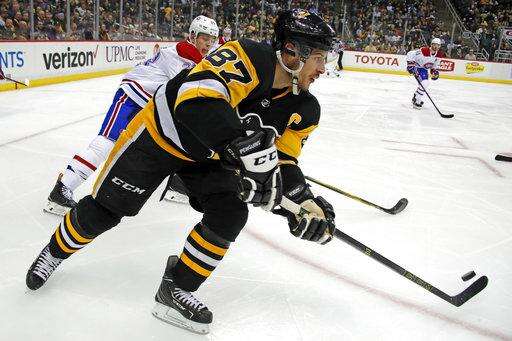 Evgeni Malkin and Patric Hornqvist also scored for the Penguins, who drew within two points of idle first-place Washington in the Metropolitan Division. Casey DeSmith finished with 27 saves and happened to have a pretty good view of Crosby treating the puck like a yo-yo.