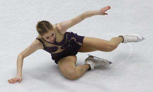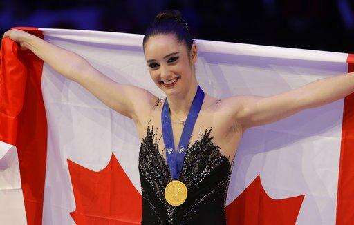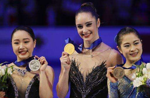 ASSAGO, Italy (AP) - Olympic bronze medalist Kaetlyn Osmond of Canada won the figure skating world title Friday with a nearly perfect performance as Olympic champion Alina Zagitova fell a jaw-dropping three times and crowd favorite Carolina Kostner turned in a lackluster skate -- both tumbling completely off the podium.