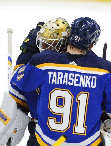 Vladimir Tarasenko and Dmitrij Jaskin also scored for St. Louis. Jake Allen made 19 saves in his eighth straight start as the Blues won for the sixth time in seven games.