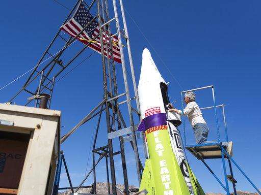 "Mad" Mike Hughes, the rocket man who believes the Earth is flat, propelled himself about 1,875 feet into the air Saturday before a hard landing in the Mojave Desert. He told The Associated Press that outside of an aching back he's fine after the launch near Amboy, California.