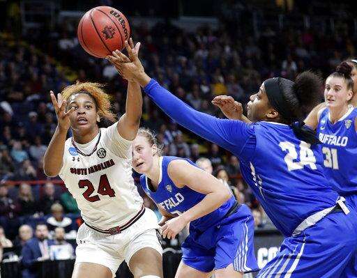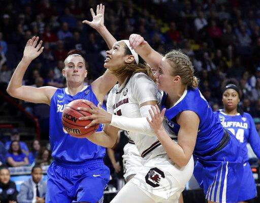 ALBANY, N.Y. (AP) - That the upstate New York crowd wasn't rooting for South Carolina didn't matter one bit to A'ja Wilson. Her imposing presence inside and her booming voice proved enough for the Gamecocks to escape Buffalo.