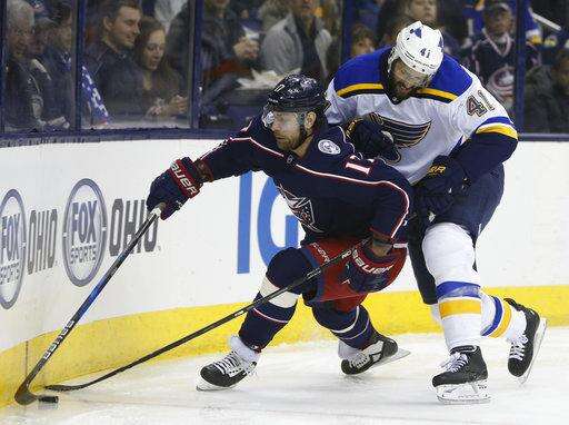 NOTES: With the win, the Blues completed the second of four sets of back-to-back games on successive weekends to close the regular season. ... Blue Jackets forward Lukas Sedlak was scratched after being struck by a puck in the back of the head Thursday against the Florida Panthers. ... The Blues' Carl Gunnarsson will miss the remainder of the season with a torn ACL in his left knee. It marked the 33 time this season the Blues have won after scoring first.