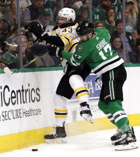 NOTES: The Bruins have won their last five games in Dallas. ... Stars D Marc Methot returned after missing four games because of a hand injury. ... Three of Schaller's 11 goals have come short-handed. ... Benn's short-handed goal was his first this season, the Stars' fifth and the ninth allowed by Boston. ... Dallas gave up eight goals in 22 opponent power plays on its winless six-game road trip but returned home and killed off all three against Boston. The Bruins' penalty killers are 12 for 13 in the last five games, including 4 for 4 on Friday. ... Marchand has 20 points (eight goals, 12 assists) in his last 11 games.
