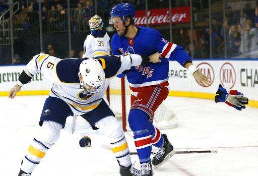 NOTES: The Rangers also defeated Buffalo 3-2 in overtime in the Winter Classic at Citi Field - which was considered a home game for the Sabres - on New Year's Day, and won 4-3 at Madison Square Garden on Jan. 18. ... The Rangers again scratched Lundqvist after he was shaken up in a collision last Tuesday against Columbus. ... The Rangers also scratched F David Desharnais. ... Buffalo scratched F Jacob Josefson, F Justin Bailey, D Justin Falk and D Nathan Beaulieu.