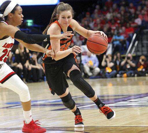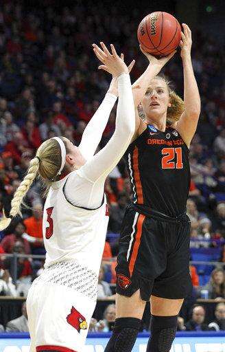 The Beavers (26-8) struggled in their bid of adding Louisville to their remarkable run of NCAA upsets after previously ousting No. 3 seed Tennessee and No. 2 Baylor last week. Oregon State outrebounded Louisville 32-28 behind 6-foot-5 Marie Gulich (14 points, eight rebounds), but shot 35 percent in losing just their second game in the past 12.