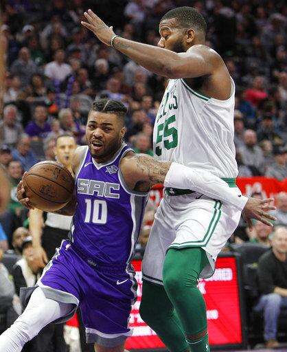 SACRAMENTO, Calif. (AP) - Terry Rozier scored a season-high 33 points and nearly matched the Celtics' franchise record for 3-pointers, Jaylen Brown made consecutive buckets to break open a close game in the fourth quarter, and Boston held on to beat the Sacramento Kings 104-93 on Sunday.