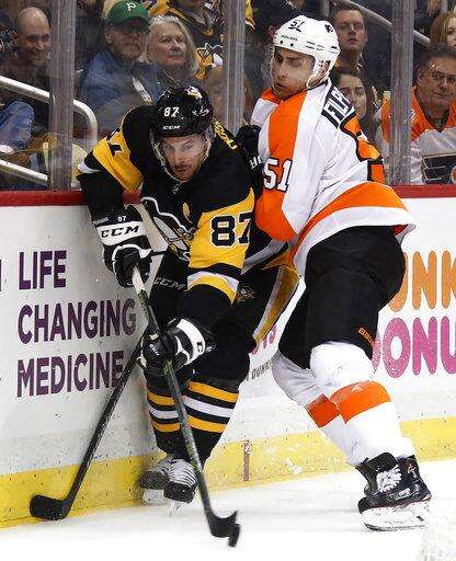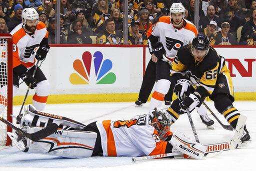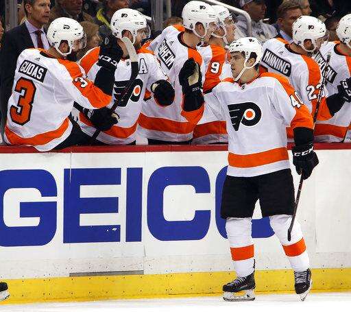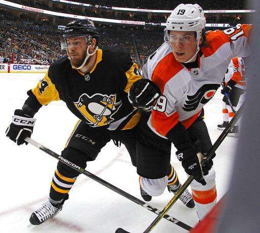NOTES: The Flyers went 1 for 3 on the power play. Pittsburgh went 1 for 2. ... The Penguins scratched D Matt Hunwick and Fs Carter Rowney and Zach Aston-Reese. ... D Robert Hagg and Fs Taylor Leier and Dale Weise were healthy scratches for Philadelphia.