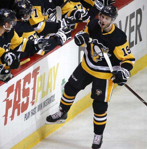 Evgeni Malkin scored his 42nd goal for Pittsburgh, pulling within two of the NHL lead held by Washington's Alex Ovechkin. Patric Hornqvist and Derick Brassard also scored for Pittsburgh. Justin Schultz had three assists for the Penguins. Matt Murray finished with 41 saves.