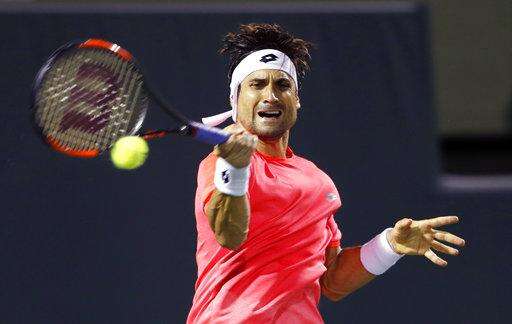 David Ferrer, of Spain, returns the ball to Alexander Zverev, of Germany, during the Miami Open tennis tournament, Monday, March 26, 2018, in Key Biscayne, Fla. (AP Photo/Joe Skipper) The Associated Press