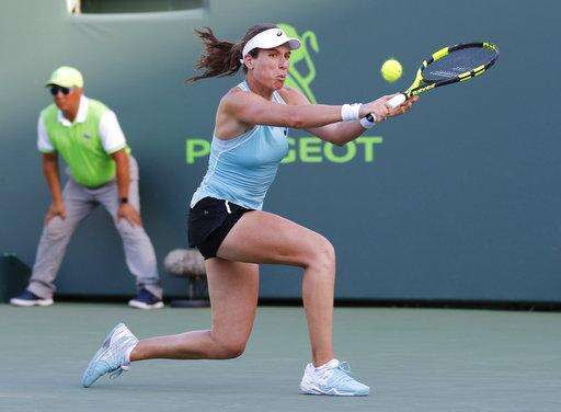 Danielle Collins hits a return to Monica Puig during the Miami Open tennis tournament, Monday, March 26, 2018, in Key Biscayne, Fla. (AP Photo/Joe Skipper) The Associated Press