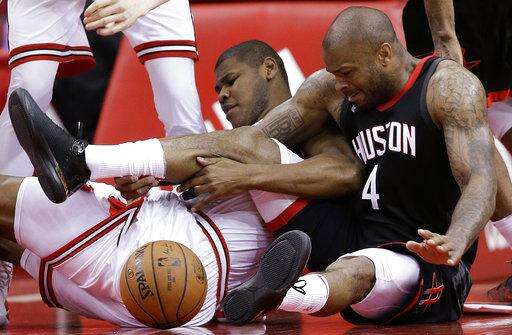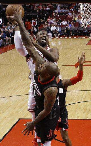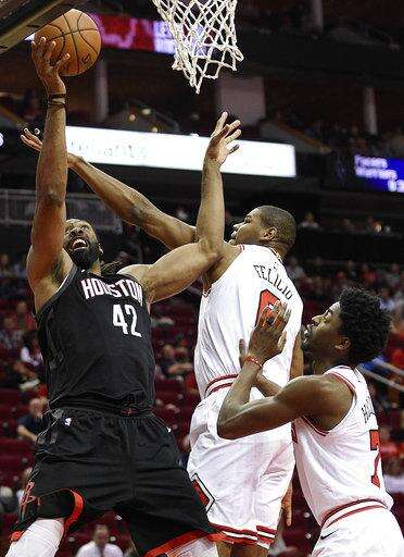 Chicago cut the lead to eight on a 3-pointer by Denzel Valentine about nine minutes before halftime before the Rockets used a 13-2 run to extend it to 51-32 five minutes later. It was 60-39 at halftime.