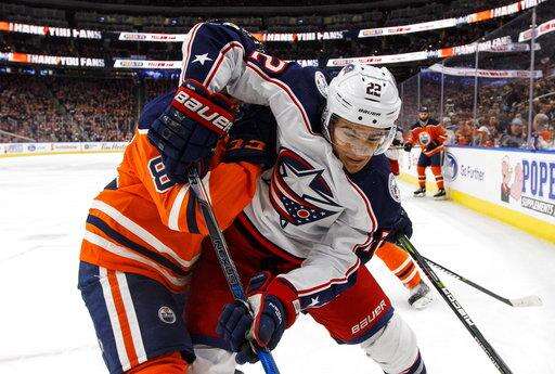 EDMONTON, Alberta (AP) - After Edmonton scored the first three goals of the game, the Columbus Blue Jackets made it apparent which team was still fighting for a playoff spot and which team was already out of the race.