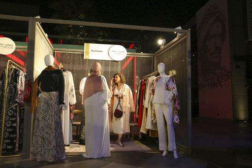 Syrian sisters Nazek and Rama Jandali searched the fashion stalls for unique and modest pieces to wear this Ramadan, set to begin mid-May. Nazek was dressed in an off-the-shoulder cream embroidered top. Her younger sister Rama wore a colorful Fendi top and Chanel shoes. Neither covered their hair.