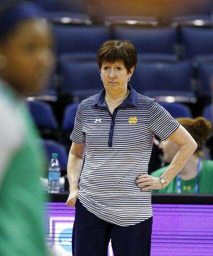 Notre Dame head coach Muffet McGraw watches during a practice session for the women's NCAA Final Four college basketball tournament, Thursday, March 29, 2018, in Columbus, Ohio. Notre Dame plays Connecticut on Friday. (AP Photo/Ron Schwane) The Associated Press