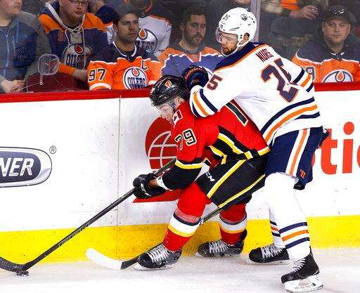NOTES: McDavid, the NHL's leading scorer, failed to pick up a point, snapping his six-game scoring streak (seven goals, seven assists). ... Edmonton was 0 for 5 on the power play. Calgary was 0 for 3 and fell to 1 for 47 over the last 16 games. ... Calgary F Johnny Gaudreau returned to the lineup after missing two games (family matter). His line centered by Nick Shore also had Edmonton-born Spencer Foo, who made his NHL debut. ... With the Travis Hamonic (upper body) out, Matt Bartkowski returned to the lineup after being scratched 45 of the previous 46 games.