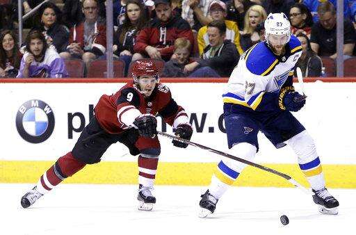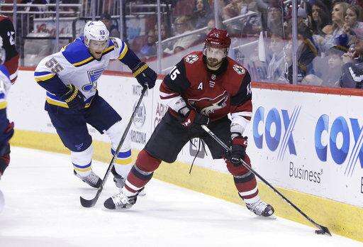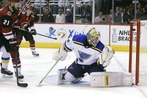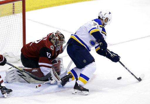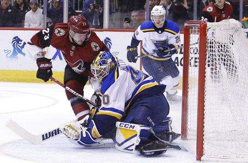 NOTES: Blues D Mitch Reinke, a 22-year-old who just finished his college season with Michigan Tech, made his NHL debut. ... The Blues called up D Chris Butler from AHL San Antonio in time for the game, but he was scratched. So was D Jordan Schmaltz with an upper body injury suffered Friday at Vegas. ... Coyotes C Christian Dvorak was scratched with a lower body injury, his first missed game of the season. ... The Coyotes reached 10 wins in March for just the fifth time in franchise history. ... Assistant captain Brianna Decker and forward Amanda Pelkey, from the United States women's hockey team that won the gold medal at the 2018 Winter Olympics in South Korea, performed the ceremonial puck drop before the game.