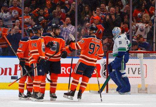 NOTES: It was the fourth and final meeting of the season between the Canadian clubs, with the Canucks winning two of the first three. ... There was a lengthy moment of silence before the game to honor the victims of Saskatchewan's Humboldt Broncos minor hockey team bus tragedy on Friday. In addition, both teams wore decals to recognize the victims, the proceeds from the 50/50 draw went toward the cause and the home logo on the scoreboard was a hybrid between the Oilers and Broncos.