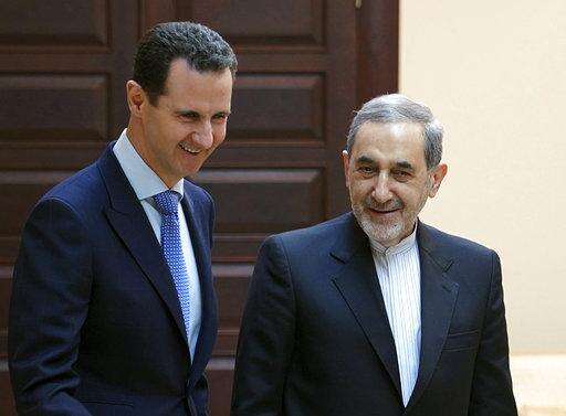 In this photo released by the Syrian official news agency SANA, Syrian president Bashar Assad, left, meets with Ali Akbar Velayati, an adviser to Iran's Supreme Leader Ayatollah Ali Khamenei, in Damascus, Syria, Thursday, April 12, 2018. (SANA via AP) The Associated Press