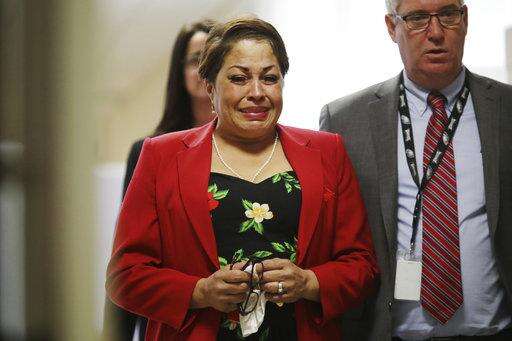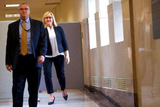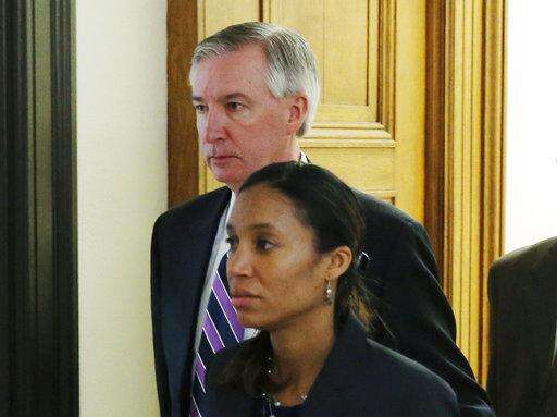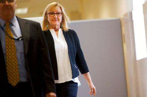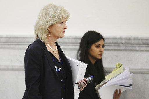 Kathleen Bliss, lawyer for actor and comedian Bill Cosby, leaves the courtroom on lunch recess during the third day of Cosby's retrial of his sexual assault case at the Montgomery County Courthouse in Norristown, Pa., Wednesday, April 11, 2018. The first accuser to testify at Cosby's retrial described the comedian Wednesday as "a serial rapist" as she parried with his lawyers, while a second accuser tearfully confronted the comedian over a 32-year-old assault allegation: "You remember, don't you, Mr. Cosby?" (Dominick Reuter/Pool Photo via AP) The Associated Press