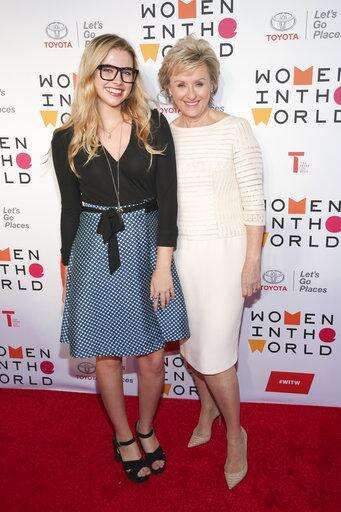 Student activist Delaney Tarr, left, and founder and CEO of Tina Brown Live Media/Women in the World Tina Brown attend the Women in the World Summit opening night at the David H. Koch Theater on Thursday, April 12, 2018, in New York. (Photo by Brent N. Clarke/Invision/AP)