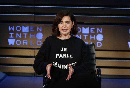 Laura Boldrini speaks at the ninth annual Women in the World Summit Thursday, April 12, 2018, in New York. (AP Photo/Frank Franklin II)