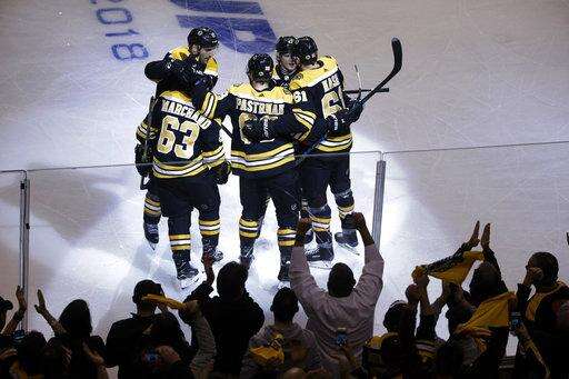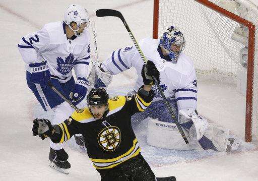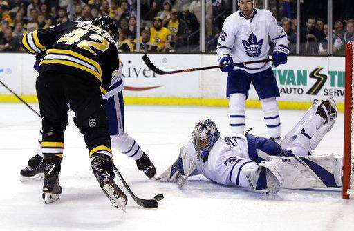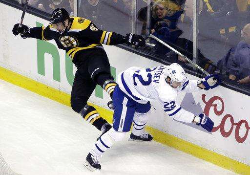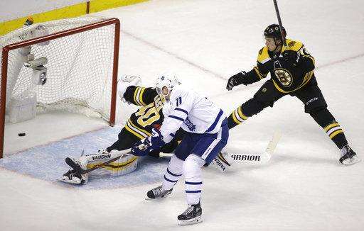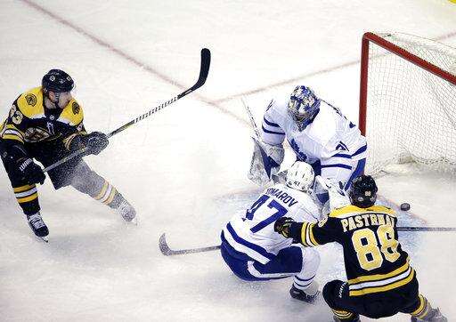 Pastrnak and Torey Krug had two assists apiece. ... Toronto was 0-for-3 on the power play. Boston was 3-for-6. ... The teams came into the game 34-34-1 in their first 69 playoff matchups, but the Maple Leafs hold an 8-6 series edge. ... The Bruins pledged the profits of their 50/50 raffle - at least $50,000 - to support the victims of the Humboldt Broncos hockey team bus crash.