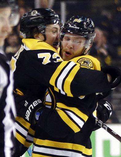Brad Marchand, David Backes and David Krejci each scored a power-play goal, and Tuukka Rask stopped 26 shots for Boston. Pastrnak scored to make it 3-1 with 38 seconds left in the second period, then moved in on goalie Frederik Andersen seven minutes into the third before backhanding the puck off the post.