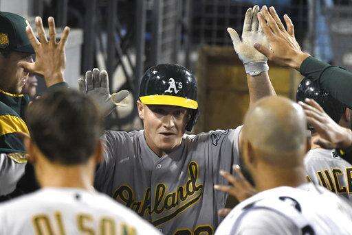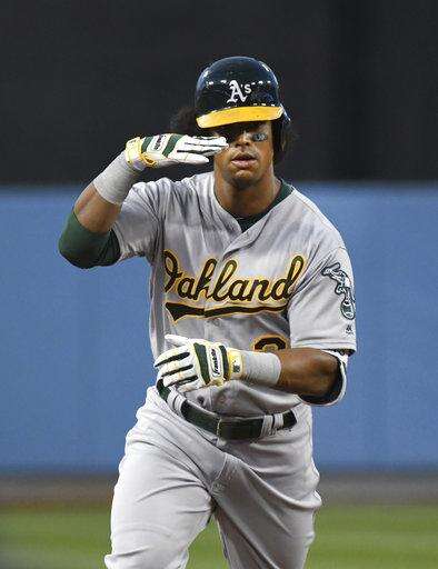 Oakland took a 2-0 lead in the first on Davis' two-out, two-run homer to right field. It marked only the second time this season Oakland has scored a run in the first inning and was the first homer allowed by left-hander Alex Wood this year. Davis and Jonathan Lucroy had three hits apiece.