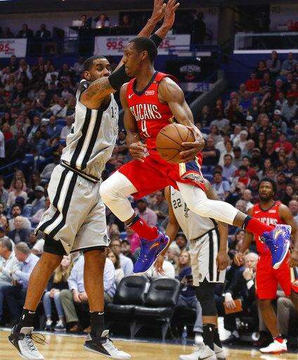 The Pelicans finished with 78 points in the paint and shot 59.1 percent (52 of 88). New Orleans also had 32 points on fast breaks, compared to 17 for the Spurs.