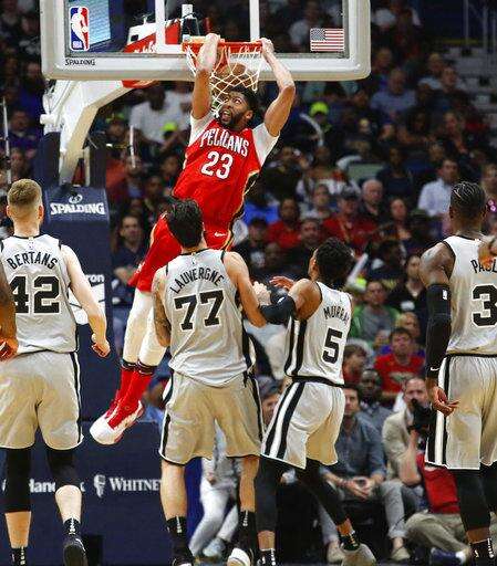 Pelicans: Won the season series against San Antonio, 3-1. ... Mirotic hasn't scored fewer than 21 in any of New Orleans' past five games. .... New Orleans' 48 victories is the third most in franchise history, which officially dates back to the NBA's return to the city in 2002-03. When Chris Paul played in New Orleans, the club won 56 games in 2007-08 and 49 in 2008-09.