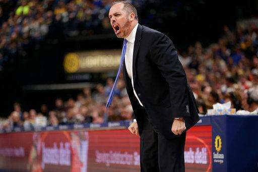 FILE - In this Jan. 27, 2018, file photo, Orlando Magic head coach Frank Vogel yells during the second half of an NBA basketball game against the Indiana Pacers, in Indianapolis. The Orlando Magic have fired Frank Vogel after two seasons. The Magic went 25-57 this season, finishing 54-110 under Vogel. The firing was announced Thursday morning, April 12, 2018, the day after the NBA season ended. (AP Photo/AJ Mast, File) The Associated Press