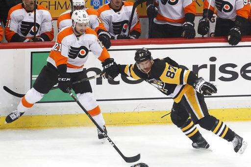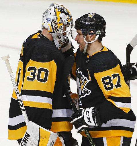 PITTSBURGH (AP) - Lost amid Sidney Crosby's latest attempt to win the NHL batting title and Evgeni Malkin's one-on-three brilliance during the Pittsburgh Penguins' clinical dismantling of the Philadelphia Flyers in Game 1 is this: The two-time defending Stanley Cup champions played pretty well in their own end, too.