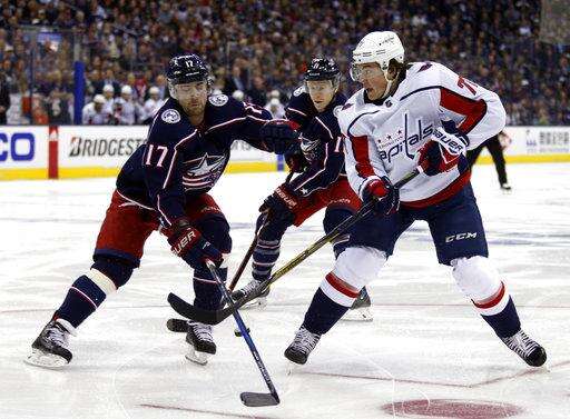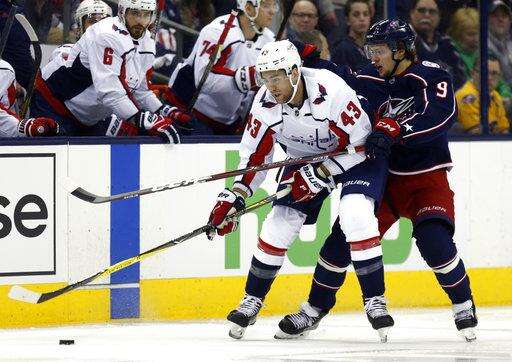 NOTES: The Capitals have outshot the Blue Jackets 133-92 through the first three games. ... Washington F Jakub Vrana played in place of Andre Burakovsky, who is out at least through Thursday's game with an upper-body injury suffered when he was checked into the boards by Blue Jackets F Boone Jenner on Sunday. Vrana was a healthy scratch for that game. ... Blue Jackets F Alexander Wennberg missed a second game after being injured in Game 1. Sonny Milano again played in his place. ... The announced crowd of 19,337 was the largest ever for a Blue Jackets game. ... Washington star Alex Ovechkin appeared in his 100th career playoff game. ... Panarin, who had an assist on Dubois' goal, has eight straight multi-point games. ... It was the 22nd time in NHL history that a playoff series went to overtime in at least three consecutive games.