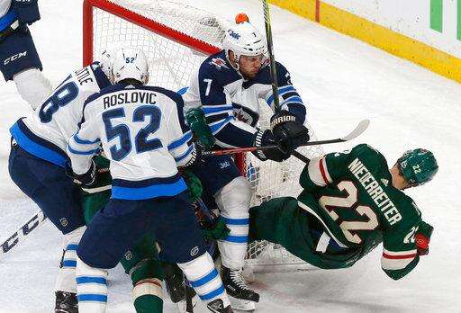 NOTES: Jets defenseman Tyler Myers was out with a lower-body injury suffered in a collision with Marcus Foligno in Game 3. He was replaced by Tucker Poolman, a native of Iowa who played in college at North Dakota, on Winnipeg's third blue line pairing with Chiarot. ... Scheifele had a goal and five assists in four games against the Wild during the regular season. ... Tyler Ennis took Parise's spot, skating with Matt Cullen and Charlie Coyle on a new-look third line. Jason Zucker and Jordan Greenway joined Mikko Koivu, and Staal centered Nino Niederreiter and Mikael Granlund. Coyle, Zucker and Niederreiter are without a point in the series.