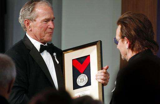 Former President George W. Bush presented the George W. Bush Medal for Distinguished Leadership to Bono on Thursday at the center. It was in recognition of Bono's humanitarian work against poverty and preventable diseases such as HIV/AIDS.