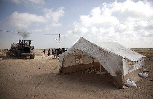 In a camp east of Gaza City, five tents were moved to within 300 meters (328 yards) of the border, just in range of tear gas volleys. Bulldozers also raised protective sand berms around the new tents. In another protest site in southeastern Gaza, earth mounds were created to define the camp's new boundary.
