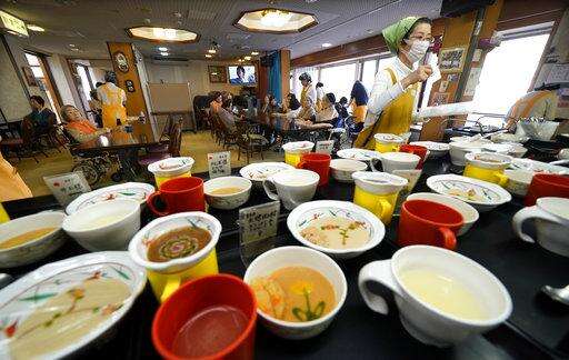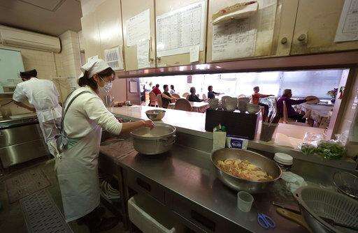 In this March 13, 2018, photo, Silver Villa Koyama staff prepare a meal at the home for the aged, in Tokyo. Though Silver Villa is ranked as among the best, nursing homesâ services often prove disappointing. Many people are opting for their own private solutions of living on their own, while getting relatively cheap help with cleaning, cooking and deliveries. Five million of Japanâs 35 million people 65 and older are estimated to live in special-care facilities, according to the Health Ministry. (AP Photo/Shizuo Kambayashi)