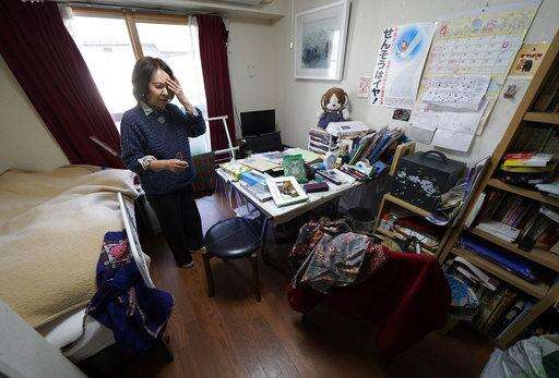 In this March 7, 2018, photo, retired harpist Yumi Makino sits in her apartment room in Tokyo. Makino won a two-year legal battle to get out of a senior citizens home she hated and get her deposit money back in a rare victory over a big real estate company. Her experience reflects the challenges many older Japanese face in finding suitable care and accommodations in âsuper-agingâ Japan, the worldâs No. 1 aging nation. (AP Photo/Yuri Kageyama)