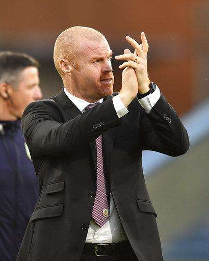 Burnley manager Sean Dyche reacts during the match against Chelsea during the English Premier League soccer match at Turf Moor, Burnley, England, Thursday April 19, 2018.(Anthony Devlin/PA via AP) The Associated Press