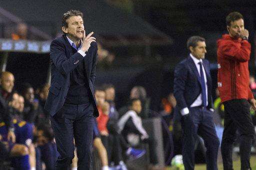 Barcelona is about to clinch the Spanish league title, but it lost the chance of winning the treble when it was eliminated by Roma in the Champions League quarterfinals. With the Copa del Rey final in mind, Barcelona coach Ernesto Valverde rested Lionel Messi and most of the team's regular starters in the 2-2 draw at Celta Vigo on Tuesday.