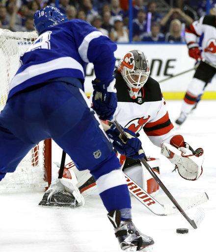 The goalie, who lost his starting job after being injured in January, stopped 35 of 37 shots, including Tyler Johnson's breakaway that kept New Jersey within striking distance after Kyle Palmieri trimmed Tampa Bay's lead to one goal with three minutes left.