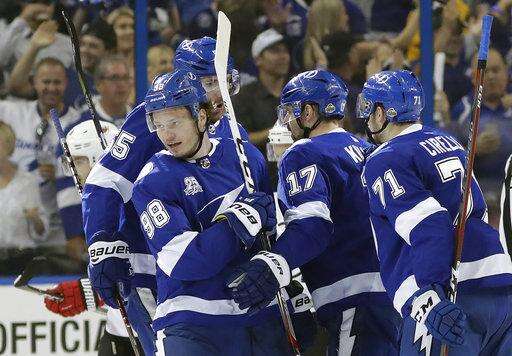Tampa Bay won the first two games at home before splitting a pair of the road, returning to Amalie Arena after Kucherov had two goals and an assist to key a 3-1 victory in Game 4