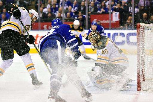 The Maple Leafs, however, wend ahead with 6:35 left in the period when Marner was quickest to a loose puck in the slot and beat Rask with a backhand to the far post after Marchand couldn't clear.
