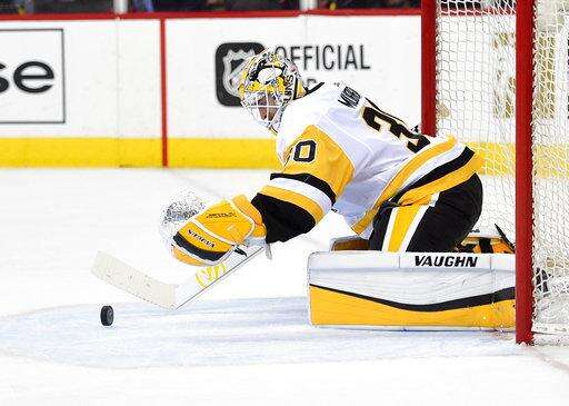 "I thought he was locked in all night long," coach Mike Sullivan said. "He made some big saves for us, especially when they were pressing down the stretch there. ... When you get those types of saves, it's easy to play with some confidence in front of him."