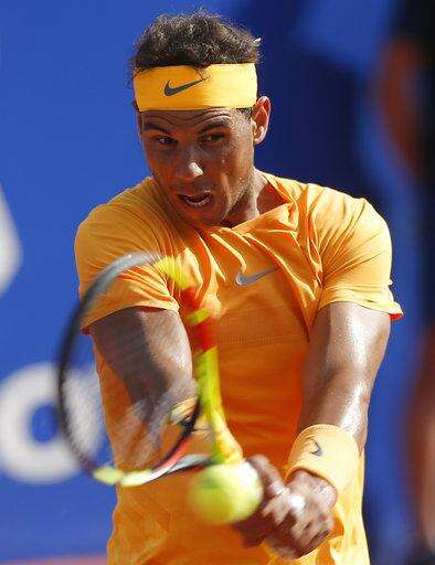 Rafael Nadal of Spain returns the ball to Martin Klizan of Slovakia during the Barcelona Open Tennis Tournament in Barcelona, Spain, Friday, April 27, 2018. (AP Photo/Manu Fernandez) The Associated Press